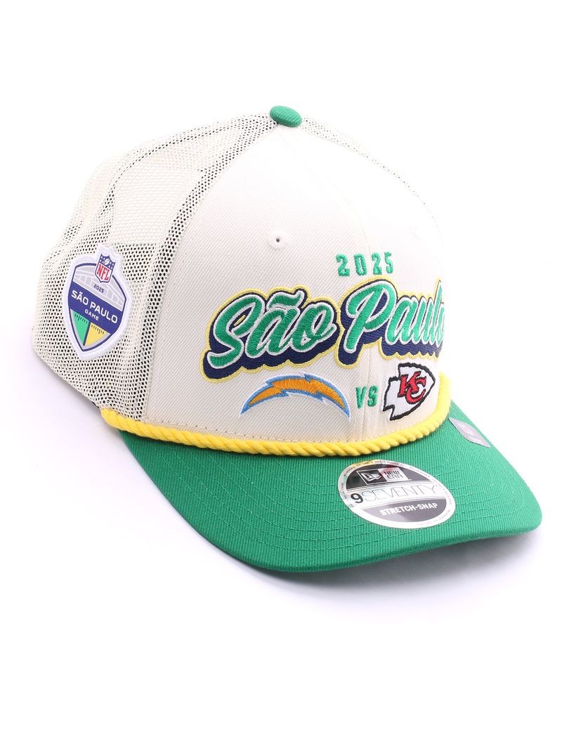 Reviva a energia do confronto entre Los Angeles Chargers e Kansas City Chiefs no NFL Game Brasil 2025 com o exclusivo 9SEVENTY Stretch Snap da New Era®. Com design moderno e esportivo, o boné possui aba curva que protege contra os raios solares e copa estruturada que mantém o encaixe firme. O grande diferencial está no tecido elástico aliado ao fechamento Snapback, proporcionando ajuste personalizado e muito conforto. Com bordados oficiais dos dois times em destaque e a flag New Era® na lateral esquerda, este modelo é indispensável para colecionadores e fãs apaixonados pela NFL.
