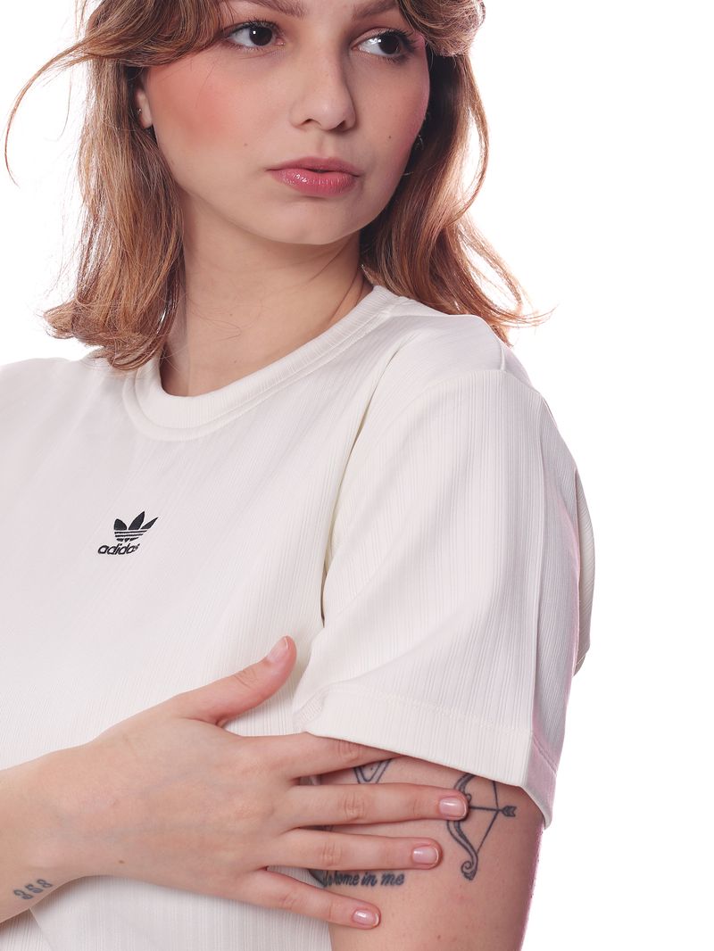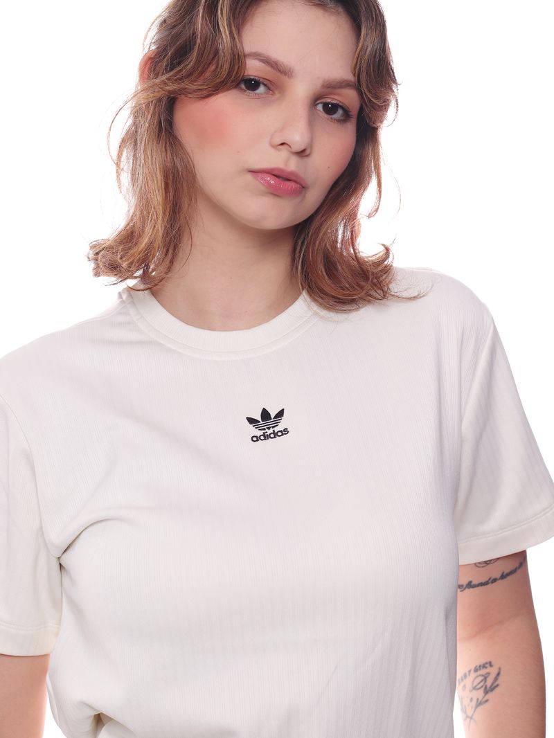 O icônico logo Adidas bordado no peito adiciona um toque esportivo e atemporal, tornando esta camiseta uma escolha certeira para composições casuais e urbanas.