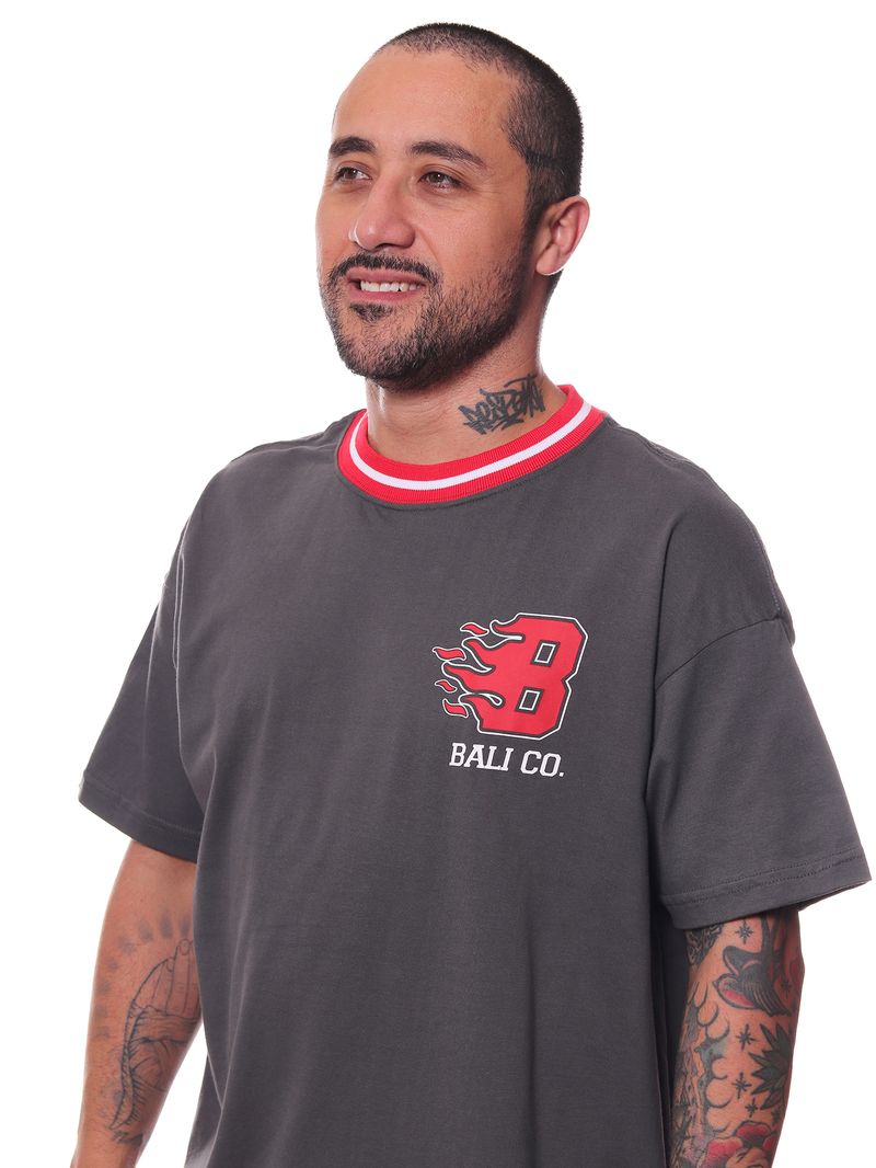 A Camiseta Bali Company B Flame nas cores bordo, chumbo e azul bali é ideal para quem busca um visual streetwear marcante e cheio de atitude.