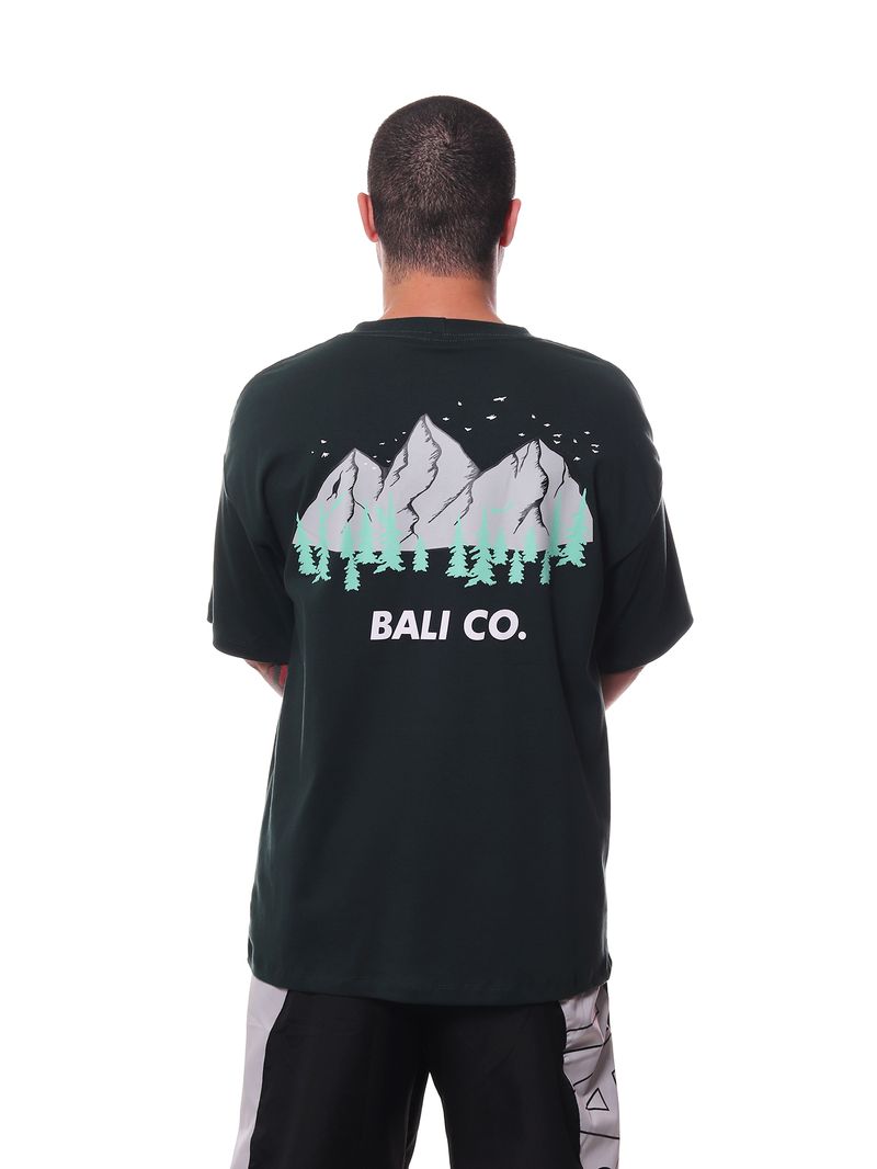 A Camiseta Bali Company Mountain Birds nas cores preto e verde traz uma estética inspirada na natureza com a identidade urbana característica da Bali Company.