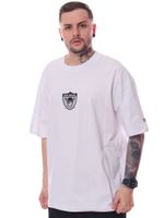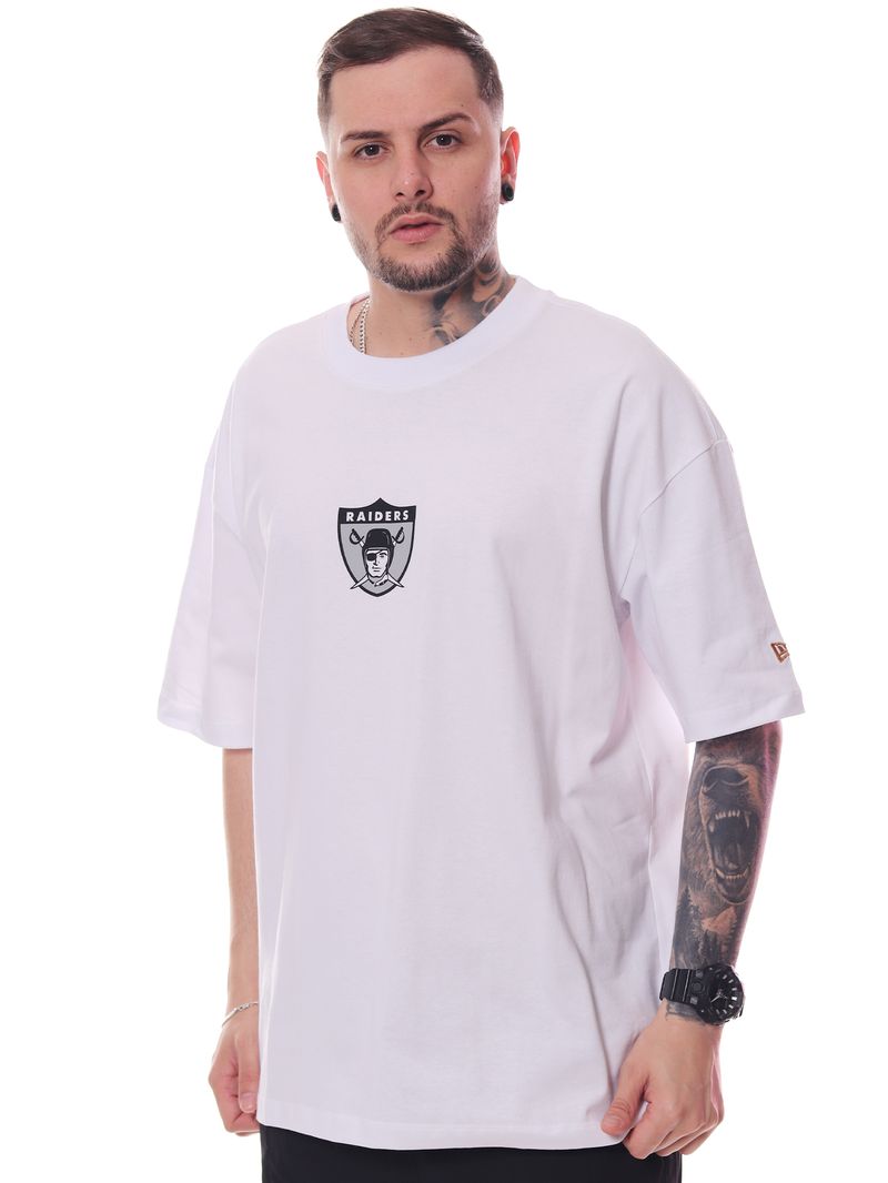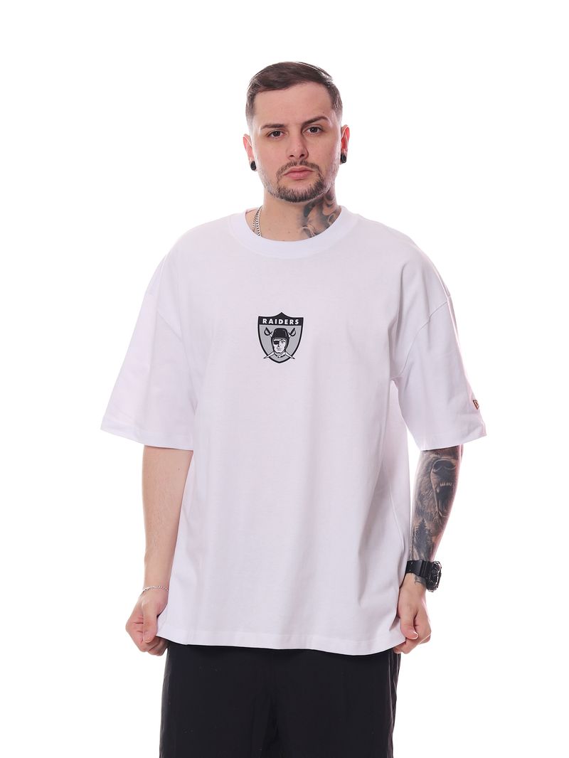 O logo oficial do Raiders estampado reforça o visual esportivo e urbano da peça. Na cor branco, a camiseta é fácil de combinar e perfeita para compor looks casuais, streetwear ou para os fãs da NFL.