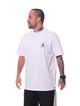 Na cor branca, a camiseta se torna um item essencial no guarda-roupa, fácil de combinar com jeans, bermudas ou calças em diferentes estilos.