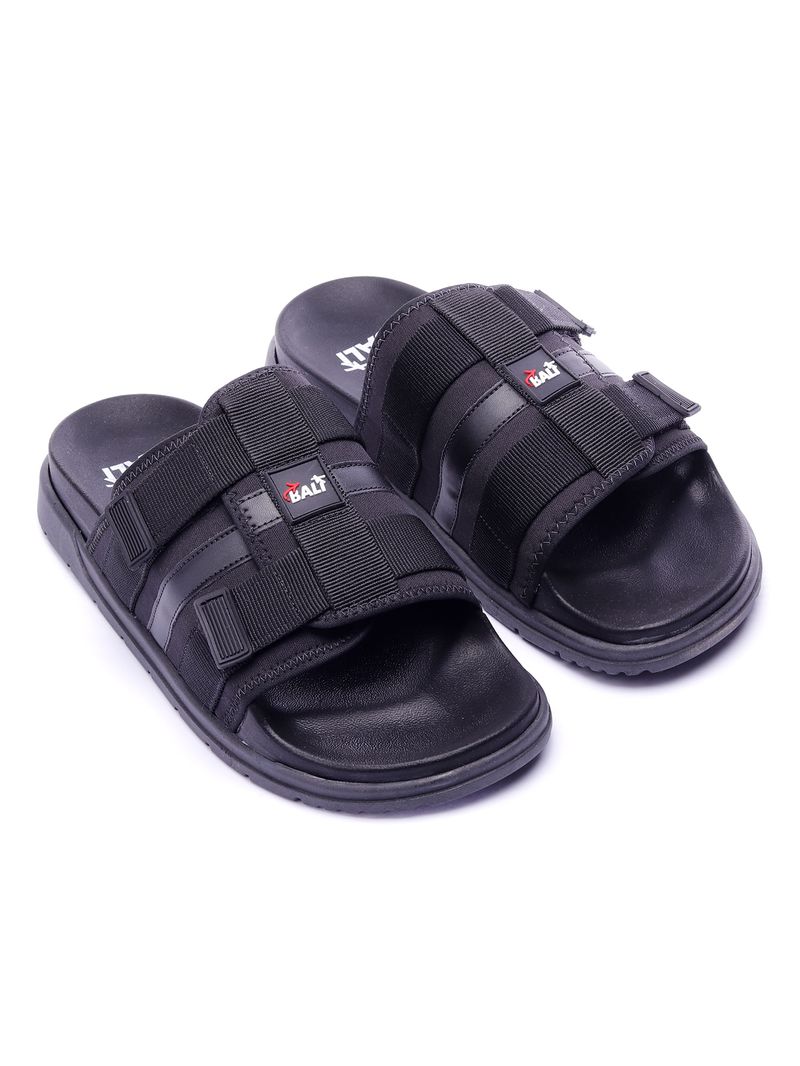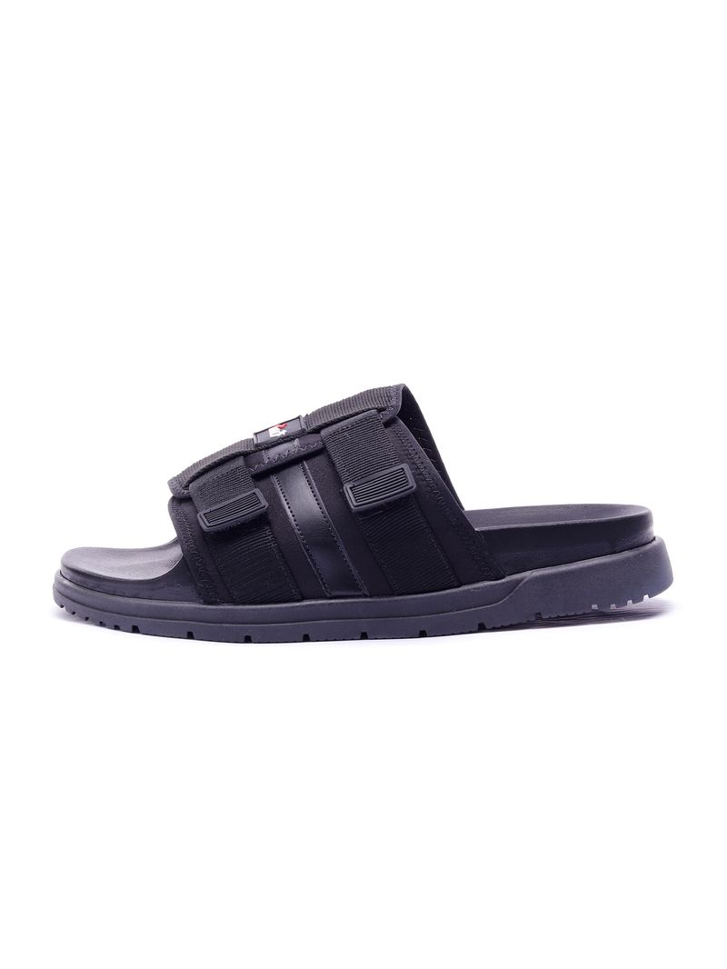 Chinelo slide unissex com fechamento em velcro.
