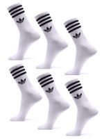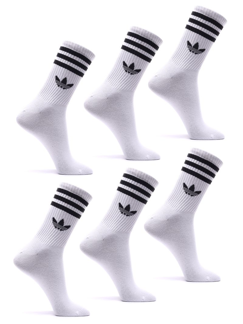 Com modelagem crew (cano médio), o modelo traz as icônicas três listras Adidas, garantindo estilo atemporal para compor looks esportivos, casuais ou streetwear. O kit conta com 6 pares, oferecendo excelente custo-benefício e praticidade para o dia a dia.