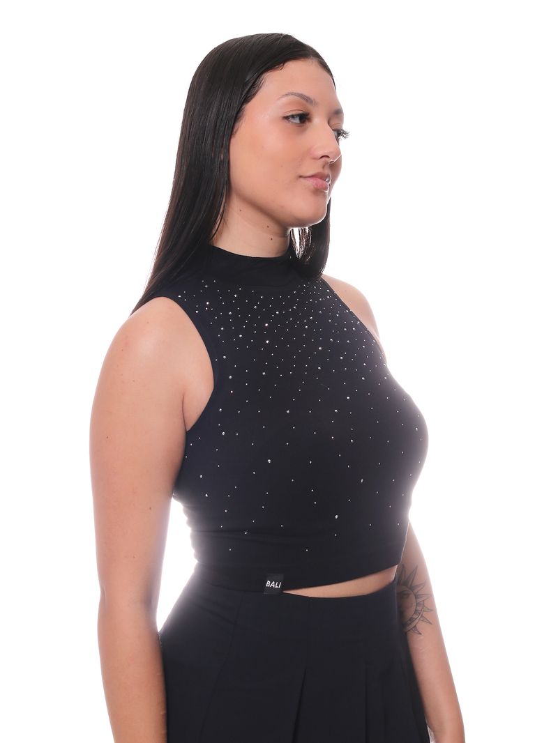 A Regata Bali Hai com Gola Alta e Aplicações na cor preta é uma peça sofisticada e cheia de personalidade, perfeita para quem deseja unir modernidade e elegância em um único look. Produzida em tecido de alta qualidade, proporciona toque macio, excelente caimento e muito conforto. Seu design diferenciado com gola alta confere um ar refinado, enquanto as aplicações exclusivas adicionam charme e um toque fashion único. A cor preta, clássica e atemporal, torna a peça extremamente versátil, ideal tanto para composições casuais quanto para ocasiões especiais. Combina facilmente com calças, saias, shorts ou sobreposições, sendo um item indispensável no guarda-roupa feminino para criar produções estilosas e sofisticadas em qualquer estação.