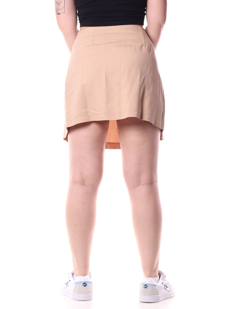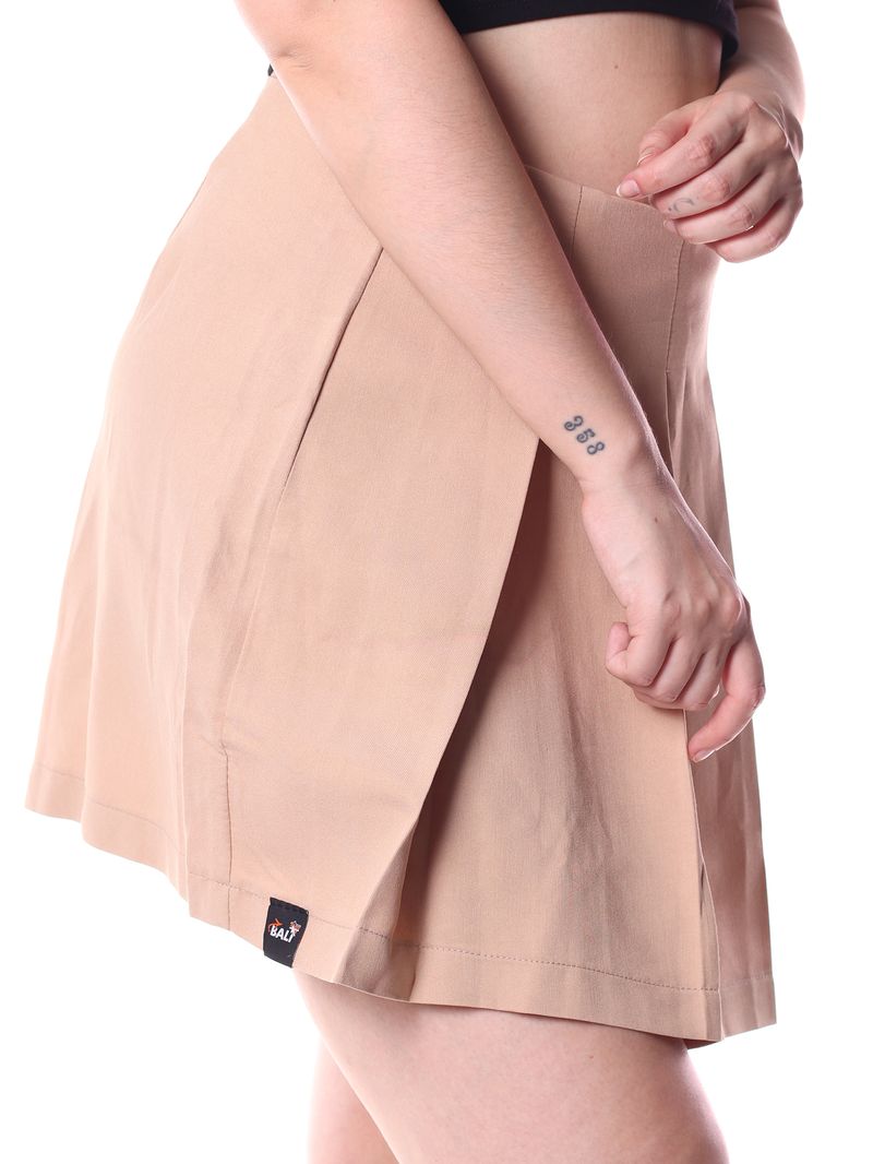 Seu design curto e plissado proporciona movimento e delicadeza, enquanto o tecido leve e fluido garante conforto durante o uso.