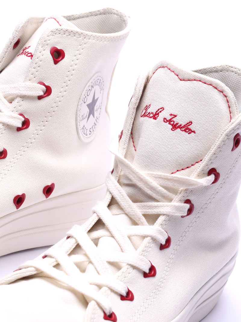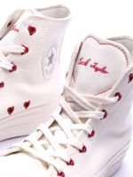 O Tênis Converse Chuck Taylor All Star Hi Lift In Love transforma o clássico cano alto em um verdadeiro gesto de carinho, unindo a imponência da plataforma a detalhes delicados que celebram o amor.