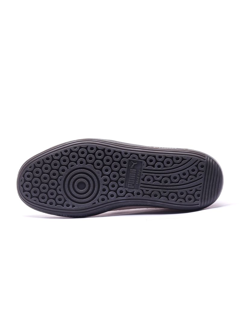 Língua de camurça e etiqueta da marca PUMA em relevo e parte traseira de malha